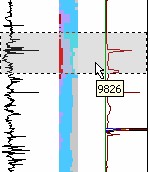 - The Preview Window on the right side of the log displays the entire log. Move the mouse to any point on the preview, and the depth will be displayed. Left click or drag the mouse on the preview to scroll through the log.