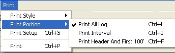 Note: Log printing will not start until Print on the Print menu or the Print Log icon